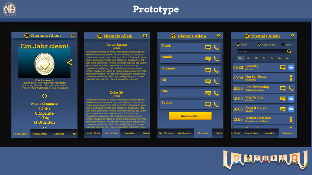Und so ist unser nächstes Ziel, eine erste Version herauszubringen, die erst mal nur einen Cleanzeitcounter hat und das „Nur für Heute“ anzeigen kann. Alles weitere wird sich dann im Lauf der Zeit ergeben. Ideen haben wir viele, aber Softwareentwicklung kostet viel Zeit.